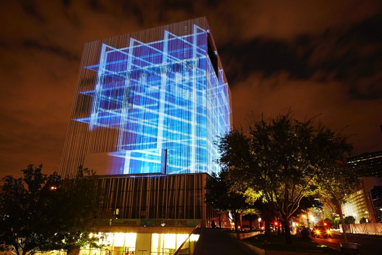 Aurora transformed the Wyly Theatre into a giant light sculpture in 2013. Photo courtesy of TDMN