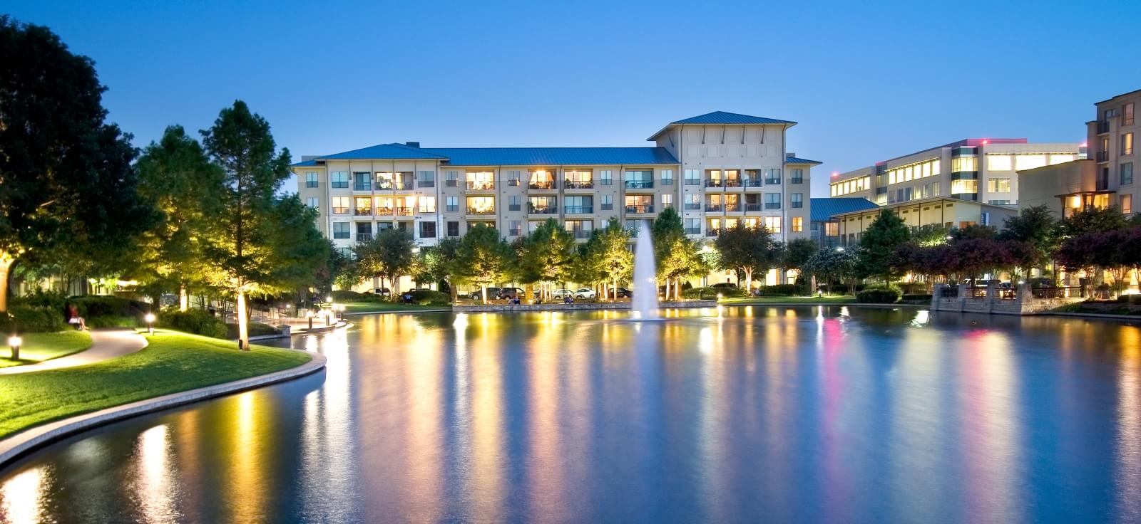 (the Shops at Legacy development in Plano, TX, is centered around a lake / company photo)