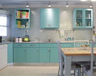Blue can bring a surprising balance to an otherwise neutral or pale kitchen.