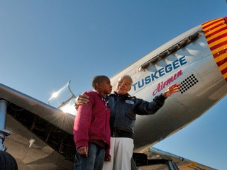 The “Rise Above” Traveling Exhibit is a mobile movie theater operated by the CAF Red Tail Squadron, America’s tribute to the Tuskegee Airmen.