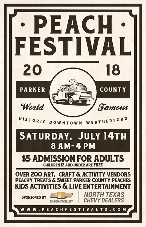 Take a trip back to yesteryear at the Parker County Peach Festival, held in Historic Downtown Weatherford, Saturday, July 14th, 8:00 am to 4:00 pm. 2018 marks the 34th Annual Peach