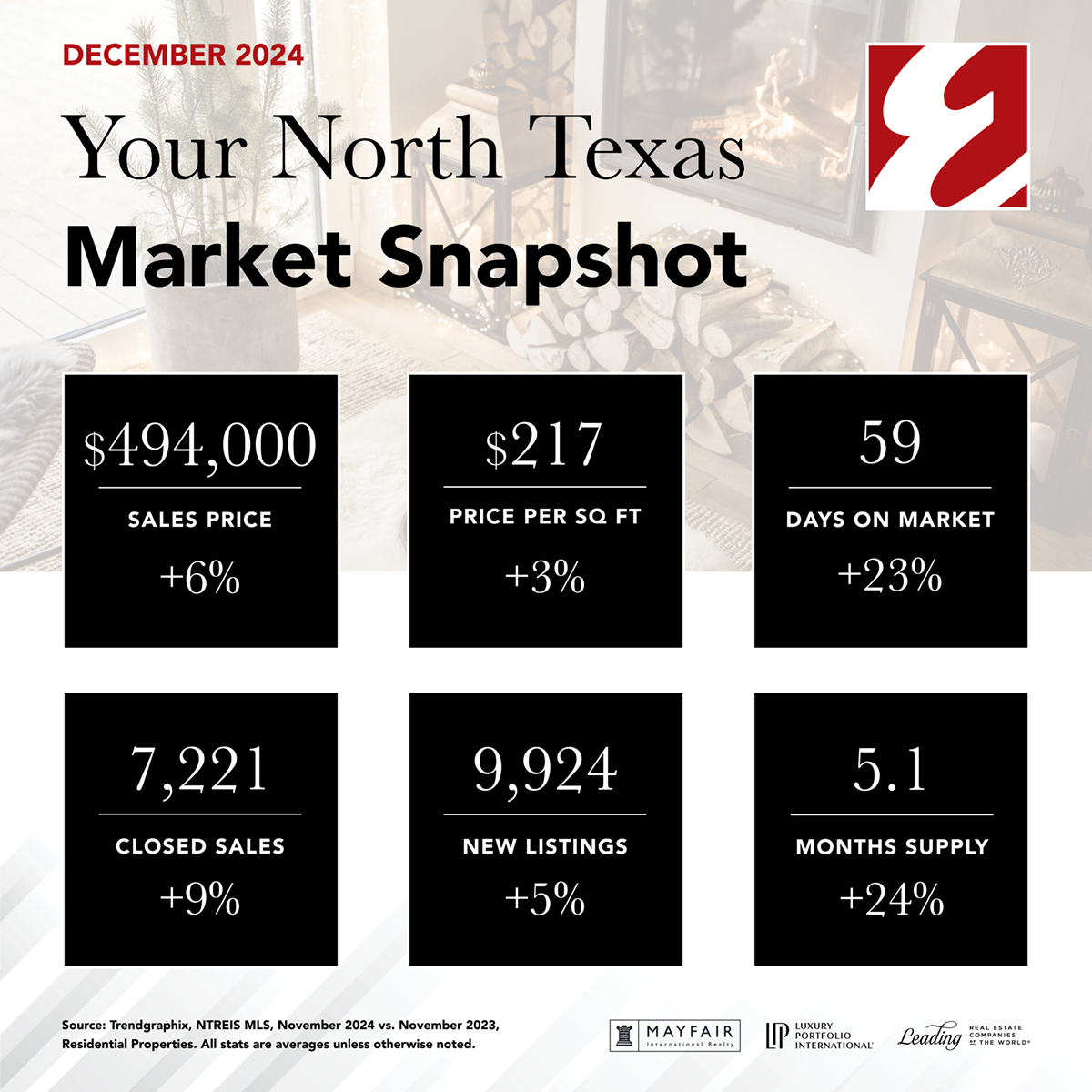 Happy New Year, Friends! I hope your holidays were merry and bright, and you are ready to embrace 2025 with hope and intention. This time last year, we were all wondering with breathless expectation just how 2024 would play out. The Texas economy and the strength of this region still encourages me, relatively speaking, and so you can find me busily gearing up for whatever Spring Market may bring. I hope you know you don’t have to have a burning real estate need to pick my brain, tap into my connections, or just enjoy a catch-up session at any time. Real estate is a relationship business, and I will always be here for anyone who needs me – as an expert or as a friend!