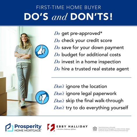 First Time Home Buyers Do’s and Don’ts! April 24, 2025 · by Marie Walton, CRS, GRI, Ebby Halliday, Realtors · in real estate market. · Wondering how to buy a home? Get it right from the start with Prosperity Home Mortgage’s quick guide for first-time buyers! Then Call Me! Marie Walton REALTOR (972) 816-5197 mariewalton@ebby.com View Website Ebby Halliday – North Dallas 16000 Preston Road, Suite 100 Dallas TX 75248 Share this: Click to share on X (Opens in new window) X Click to share on LinkedIn (Opens in new window) LinkedIn Click to share on Facebook (Opens in new window) Facebook Click to email a link to a friend (Opens in new window) Email Click to print (Opens in new window) Print Click to share on Reddit (Opens in new window) Reddit Click to share on Tumblr (Opens in new window) Tumblr Click to share on Pinterest (Opens in new window) Pinterest Click to share on Pocket (Opens in new window) Pocket Like Loading... Related