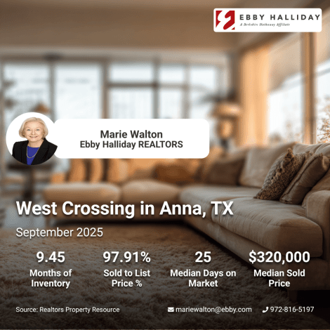 With the current market dynamics in West Crossing, Anna, TX, buyers can look forward to a wide selection of homes and potential opportunities for negotiations. For first-time buyers, this could mean entering the market with favorable conditions. Move-up buyers have the advantage of a growing inventory, allowing them to find homes that better fit their evolving needs.