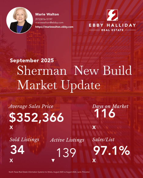 Hey, if you’re eyeing the single-family new build market in Sherman, Texas, right now in September 2025, it’s shaping up to be a pretty sweet spot for buyers like you—kinda like the universe is finally giving everyone a breather after those wild post-pandemic years. Prices are dipping a bit, with median listings hovering around $335,000, down about 10% from last month and 9% from last year, which means more room to negotiate without feeling like you’re in a bidding war frenzy. Inventory’s building up too, with over 180 new constructions popping up from builders like Dunhill, Highland, and K. Hovnanian, starting as low as the mid-$200s in spots like Pebblebrook and Heritage Ranch—think spacious 3-4 bedroom setups with modern kitchens and garages that are ready to move into or close soon. Homes are sticking around longer, about 81 to 93 days on average, so you’ve got time to really poke around and pick what fits your family without rushing. Overall, the vibe here’s steady and buyer-friendly, thanks to Texas’s construction boom easing up that supply crunch, even as statewide permits cool off a tad; it’s not exploding like before, but that’s good news for snagging deals before things heat up again with potential rate drops.