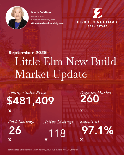 In short, September’s condition saw new-build single-family homes in Little Elm entering a more balanced phase—no longer overwhelmingly favoring the seller, but still supported by solid fundamentals and suburban growth dynamics.
