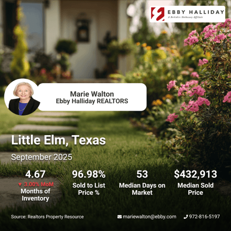 Navigating the real estate market requires expertise and local insight. For personalized guidance tailored to your needs, contact Marie Walton.REALTOR. Marie is ready to assist you in making informed decisions in the Little Elm, Texas market. Reach out today at mariewalton@ebby.com to start your homebuying journey.