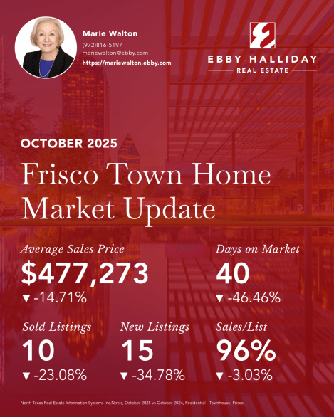 #TX #RealEstate #TownHomesForSale #DFWRealEstate #NorthTexasTownHomes #RealEstateTrends #Realtor #RealEstateAgent #BuyerAgent #TownHouseHunting #HomeBuying #SellerAgent #ListingAgent #SellingMyTownHouse #HousingMarket #DFWRealty #TexasHomes #RealEstateTrends #FriscoTX #FriscoTownHomes #RealEstateFrisco #FriscoRealEstate #TownhomeMarket #SellerAdvantage #DFWHomeSales #InvestInFrisco #MarieWaltonRealtor