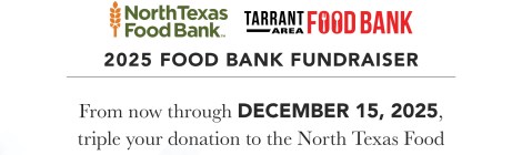 Triple Your Donation to the North Texas Food Bank or Tarrant Area Food Bank Now through December 15